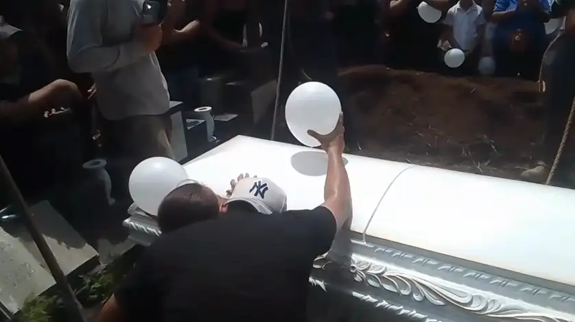 Mientras un grupo de mariachis cantaban la alabanza cristiana “No me digas adiós”, de Samuel Hernández, los compañeros de clases lanzaron globos blancos al cielo “por el eterno descanso” de la adolescente.