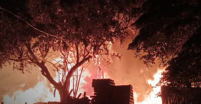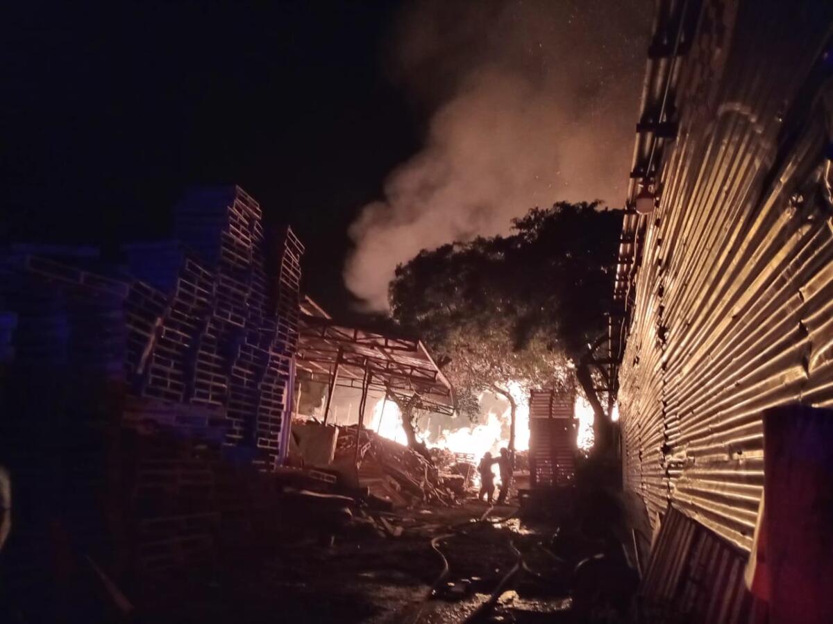Parcialmente destruida quedó una venta de madera y fábrica de polines luego de registrarse un incendio de grandes proporciones a las dos de la madrugada de este viernes de donde fueron los rieles cuatro cuadras al sur, en el barrio Los Cocos, en la comarca Sabana Grande, Distrito 7 de Managua.