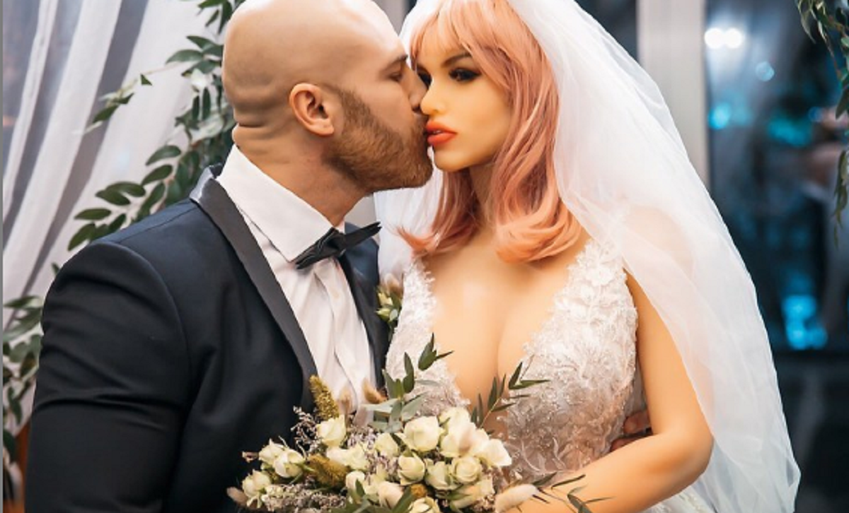 El fisicoculturista Yuri Tolochko se casó con su muñeca sexual, pues asegura que su amor se intensificó durante el encierro por el coronavirus.