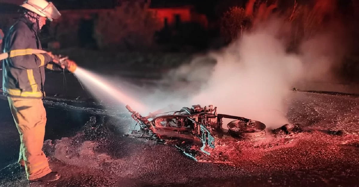Al sitio se hicieron presentes miembros de los Bomberos Unidos quienes procedieron a controlar y extinguir las llamaradas que dejaron la motocicleta convertida en chatarra.