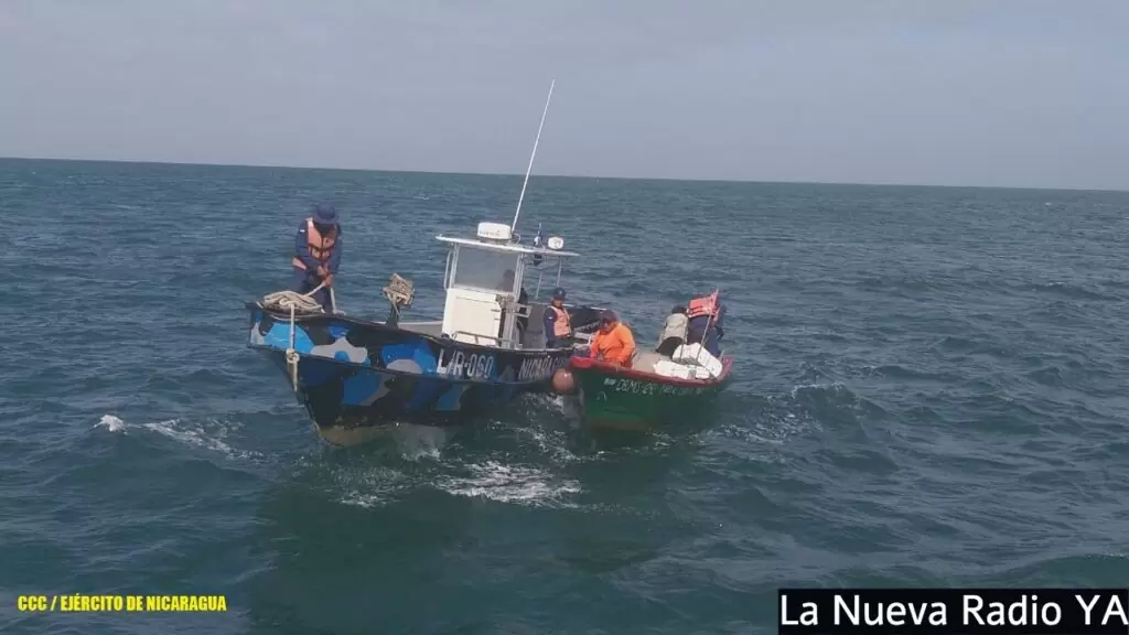 Miembros de la Fuerza Naval del Ejército de Nicaragua rescataron en el Océano Pacifico a los 3 tripulantes de una lancha que quedó a la deriva frente a las costas del municipio de El Viejo, en el departamento de Chinandega.
