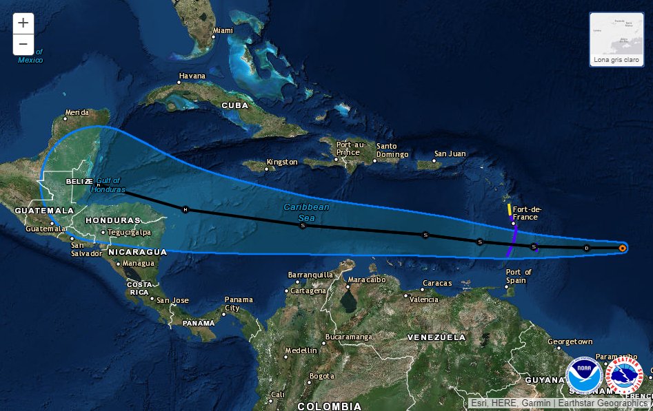 posición Latitud 11°36′ Norte Longitud 061°12′ Oeste, la cual se desplaza a 20 nudos
