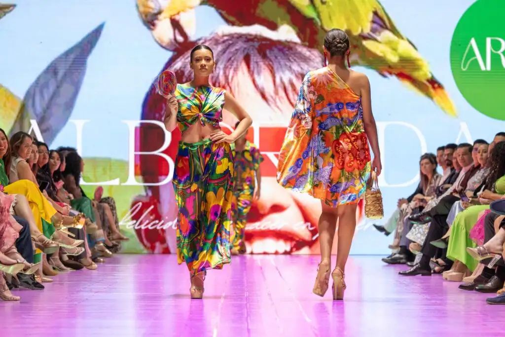 La diseñadora venezolana Gloria Penso deslumbró con su colección “Alborada: La felicidad de nacer en América”, donde homenajeó a la diversidad del continente. Con atuendos llenos de energía y colores, Penso expresó su emoción por ser parte de esta plataforma, señalando que su éxito es un reflejo del esfuerzo de todo su equipo en Aras, su empresa de diseño latinoamericana.