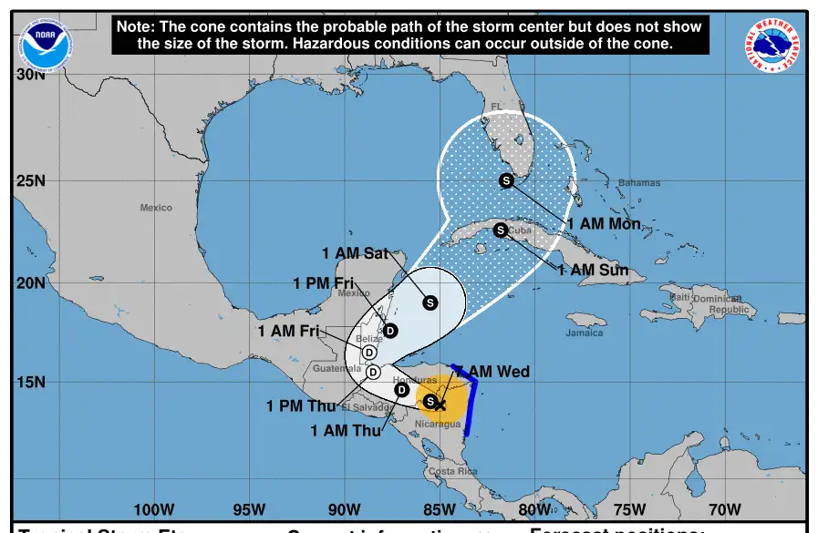 Se estima que la ahora Tormenta Tropical estará llegando a Honduras la tarde de este miércoles.