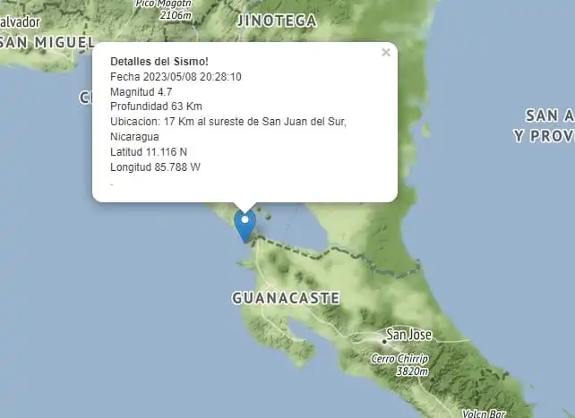El epicentro del sismo se ubicó a 17 kilómetros al sureste del municipio de San Juan del Sur en el departamento de Rivas.