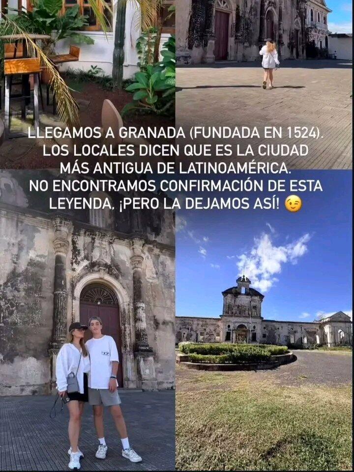 Su recorrido continuó por la ciudad colonial de Granada. La turista caminó por la plaza central y destacó la leyenda de que es la ciudad más antigua de Latinoamérica continental, fundada en 1524, un dato que compartió con asombro.