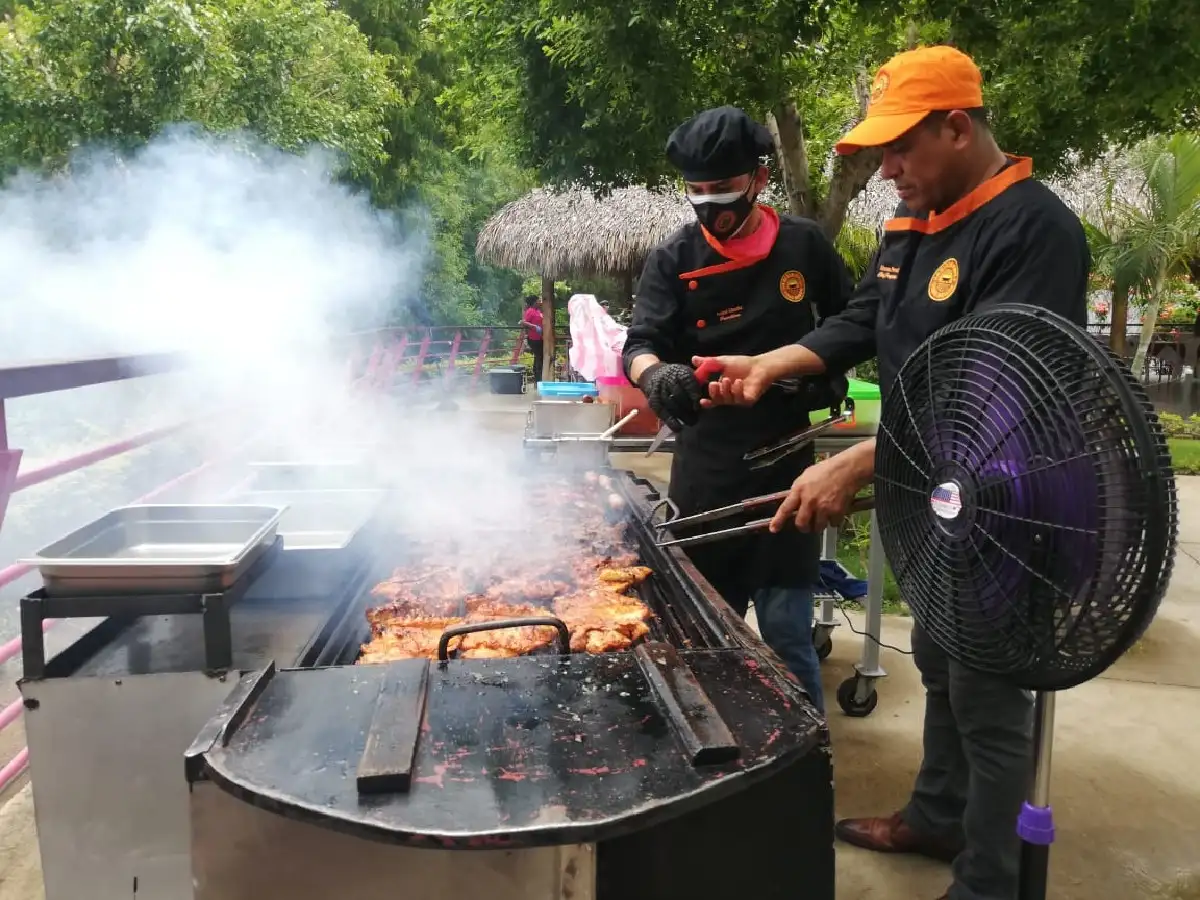 El matrimonio del chef Norman Pernudis y Janixia Ruiz, ambos propietarios de Janixia Grill, prepararon junto a su equipo de trabajo 63 libras de carnes entre res, cerdo, pollo, puyazo y lomo de costillas, para ofrecer un almuerzo con todas las de ley a junto a los trabajadores de Tu Nueva Radio Ya y a las felices ganadoras.