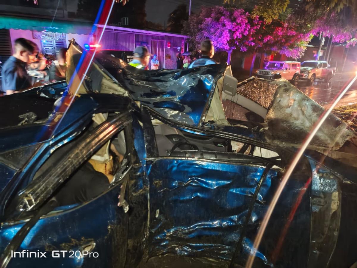La víctima viajaba como pasajero en el carro placa M 231-573, conducido a exceso de velocidad por Roberto José Espinoza Escobar, de 18 años, quien resultó gravemente lesionados.