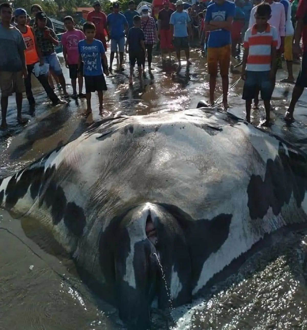 Pobladores y pescadores del balneario Masachapa, en el municipio de San Rafael del Sur, se mostraron sorprendidos la mañana de este viernes luego de encontrar en las costas una Mantarraya Gigante, recién salida del mar.