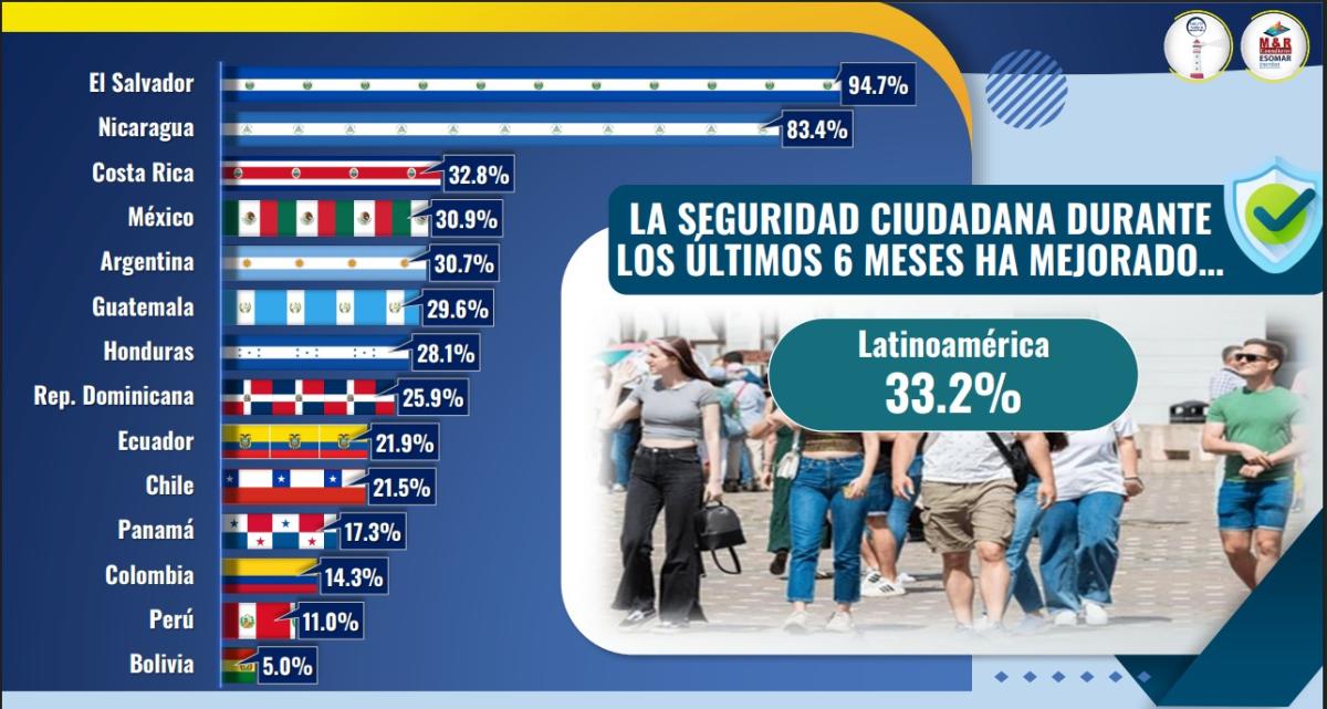 Respecto a la seguridad ciudadana, el 83.4% de encuestados expresó que se siente seguro. En tanto en Costa Rica, un 40% afirma que se sienten inseguros.