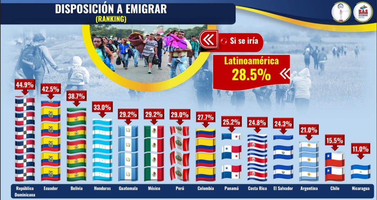 El estudio también reveló que solo un 11% de los nicaragüenses están dispuestos a emigrar, lo que es el valor más bajo en la historia de nuestra nación.