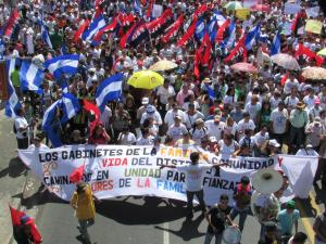 Millares de familias de Managua, saludaron este sábado el 35 Aniversario de la Revolución, realizando una caminata con la que reafirmaron el compromiso por la Unidad, los Valores de la Familia y la Vida, desde este Modelo Cristiano, Socialista y Solidario.