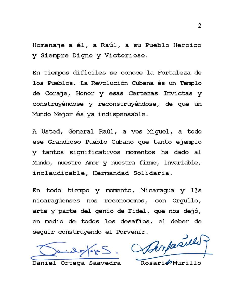 En este Año del Centenario de nuestro Comandante Fidel, la Revolución Popular Sandinista rinde Homenaje a él, a Raúl, a su Pueblo Heroico y Siempre Digno y Victorioso.