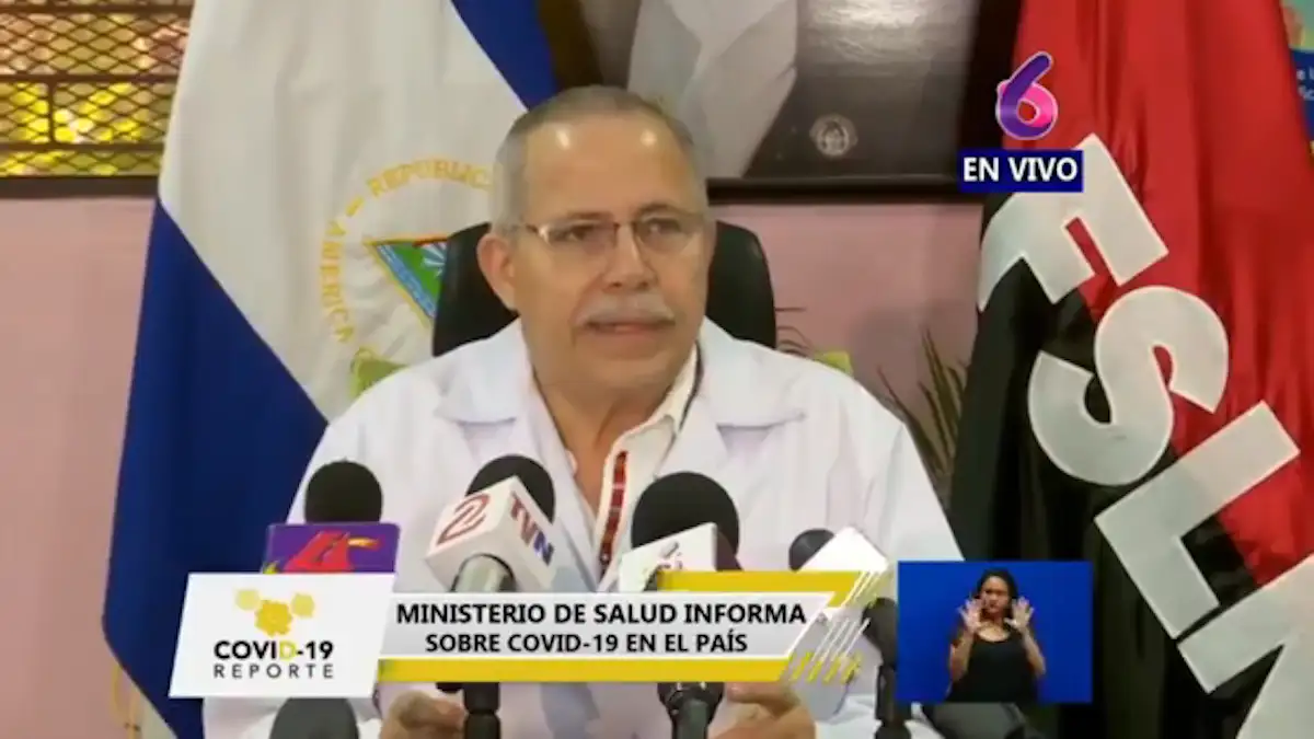 Doctor Carlos Sáenz, Secretario General del Ministerio de Salud de Nicaragua, brindando el informe sobre coronavirus