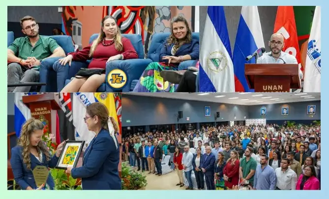 La compañera Olga Lisogor, directora de la Agencia de Noticias Sputnik, agradeció la hospitalidad, celebrar los 80 años del restablecimiento de las relaciones entre Rusia y Nicaragua, y los 10 años de nuestra agencia de noticias.