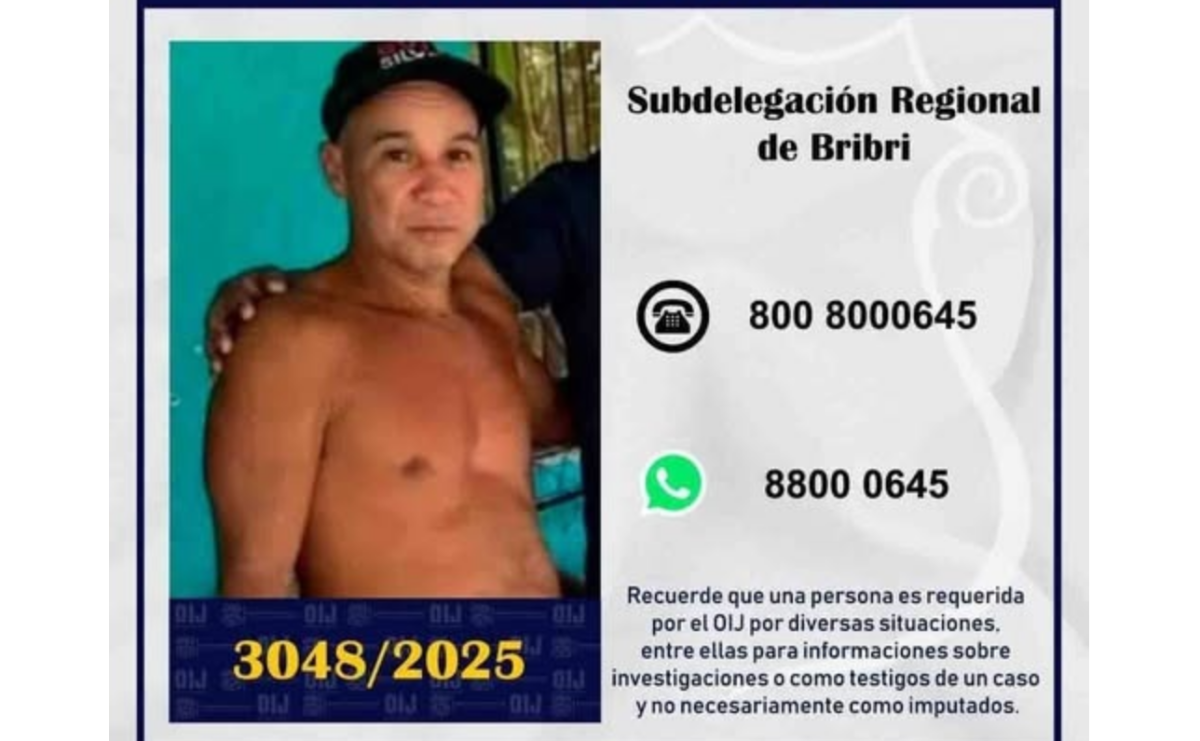 Para brindar cualquier información sobre el paradero del sujeto las autoridades del Organismo de Investigación Judicial de Costa Rica pidieron llamar a la línea 800-8000-OIJ (645) o al WhatsApp 8800-0645.