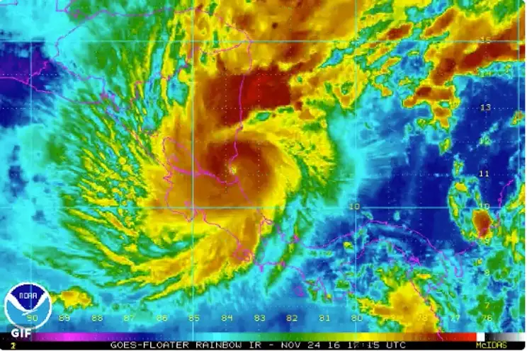 Con vientos de 175 km/h el Ojo del Huracán Otto, categoría 2, ya tocó territorio nicaragüense, cerca del municipio de San Juan de Nicaragua, según informa el Centro Nacional de Huracanes (CNH) de Estados Unidos.