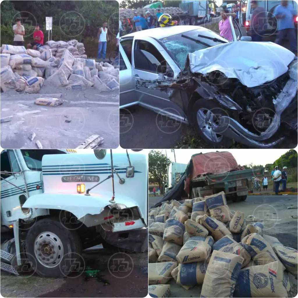 Testigos del hecho dijeron que el carro era conducido por José Antonio Cabrera  Mejía, de 33 años, quien supuestamente en una curva invadió el carril del furgón que transportaba una rastra con cemento.