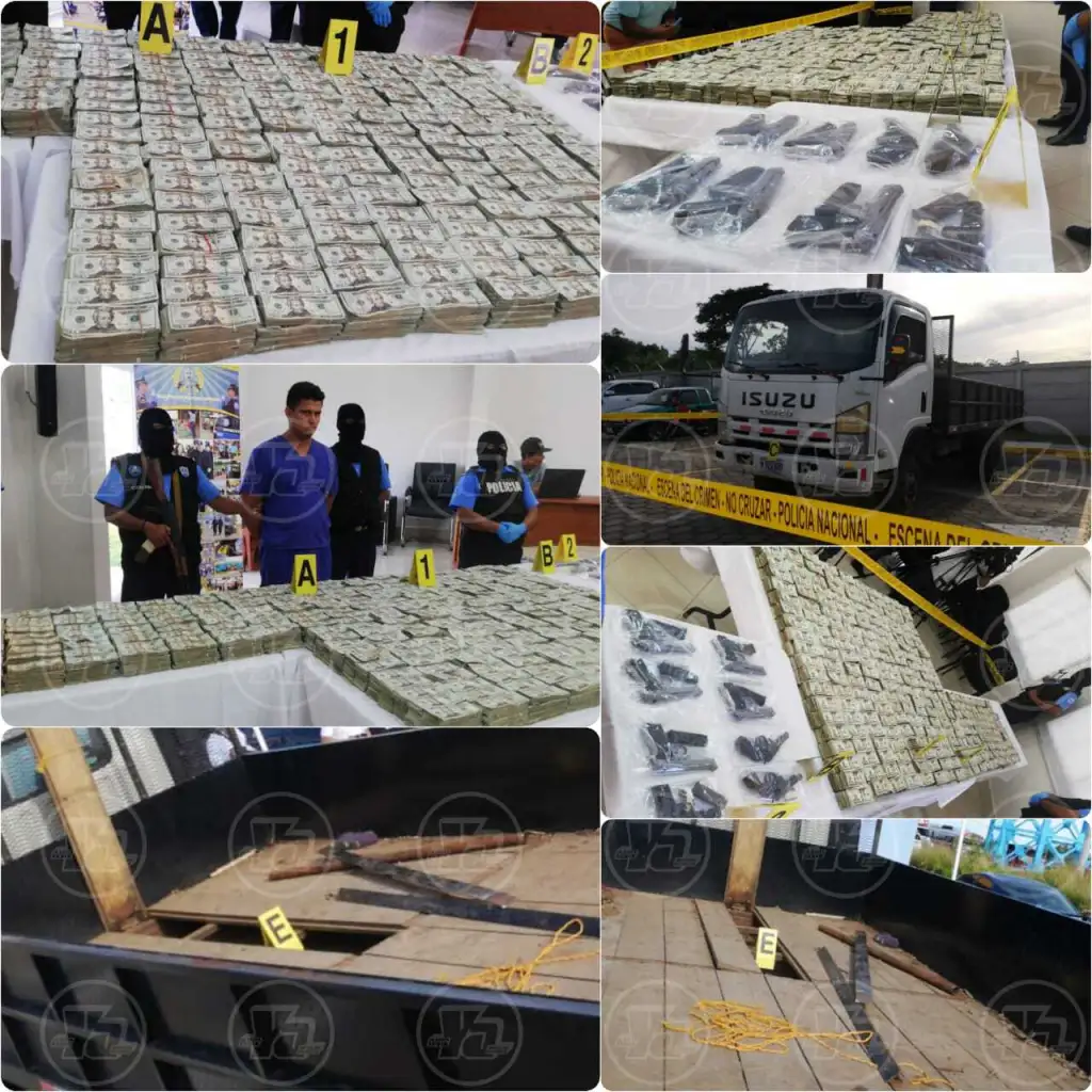 La Policía de Nicaragua decomisó un total de dos millones 669 mil 195 dólares, que iban ocultos en un camión caleteado en el departamento de Chinandega.