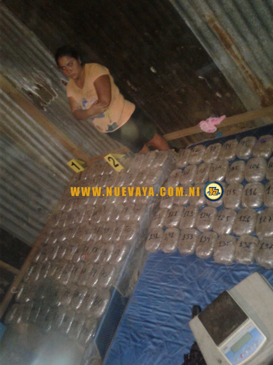Un total de 139 paquetes de marihuana compactada que dieron un peso de 147 libras y pico, fueron incautados anoche en la casa de Tania Raquel Calero, también conocida como Rachel Alemán, de 29 años, de la terminal de la ruta 168 tres cuadras arriba y dos al sur en el reparto Bella Aurora, en el Distrito 7 de Managua.