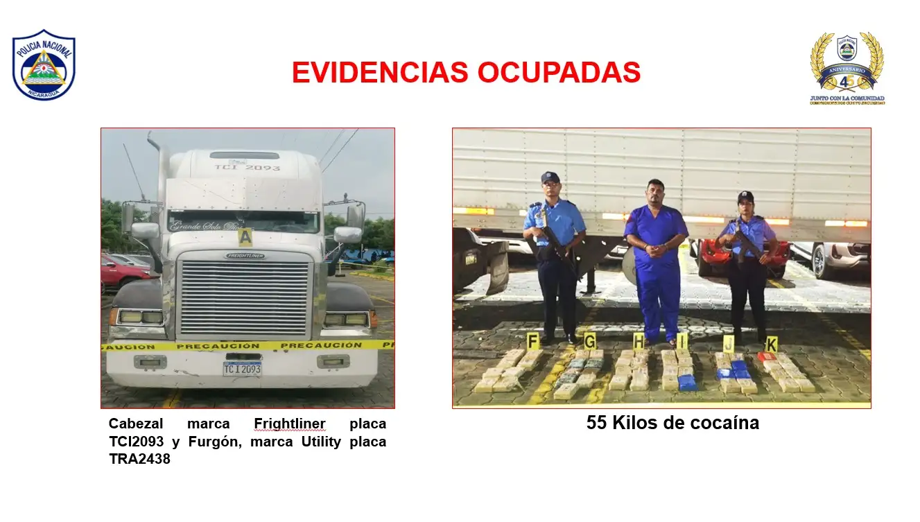 En un nuevo golpe al crimen organizado y el narcotráfico internacional, la Policía Nacional de Nicaragua incautó 55 kilos de cocaína que eran trasladados en un furgón por el hondureño Wehiner Mishael Hernández Espinoza, de 44 años.