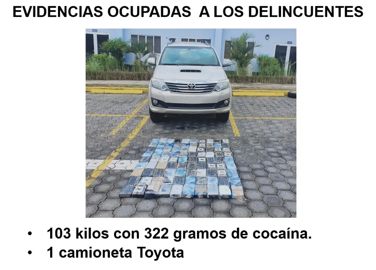 Más de 103 kilos de cocaína con un valor de 2 millones 583 mil dólares en el mercado estadounidense de las drogas, fueron incautados por la Policía Nacional en Nagarote, León, en otro golpe contundente al crimen organizado y el narcotráfico internacional.