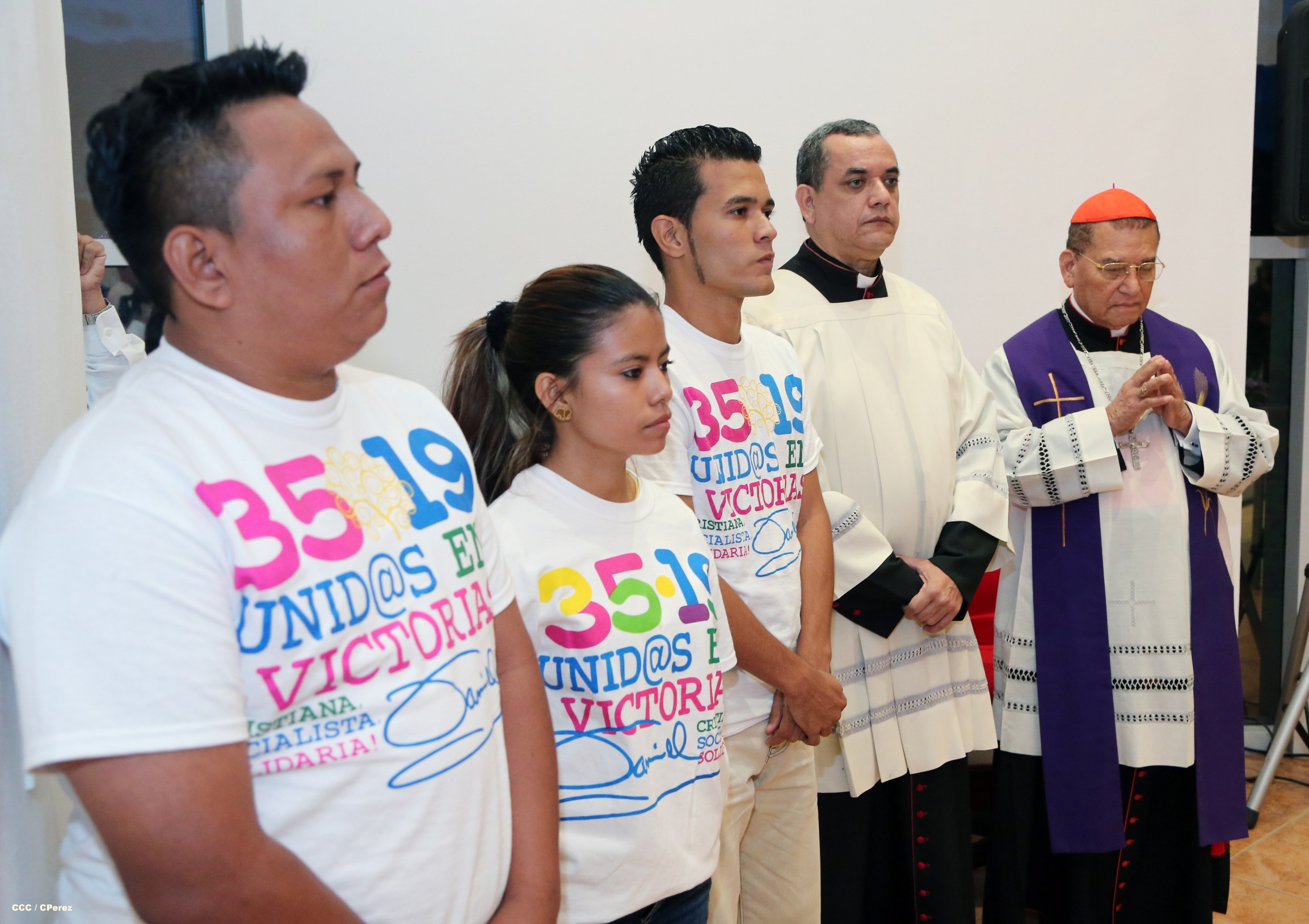 En la actividad litúrgica a cargo por el cardenal Miguel Obando y Bravo, estuvieron presentes la compañera Rosario Murillo, Monseñor Eddy Montenegro y miembros de la juventud sandinista, quienes a petición del presidente Daniel mantuvieron un minuto de silencio por los hermanos masacrados.