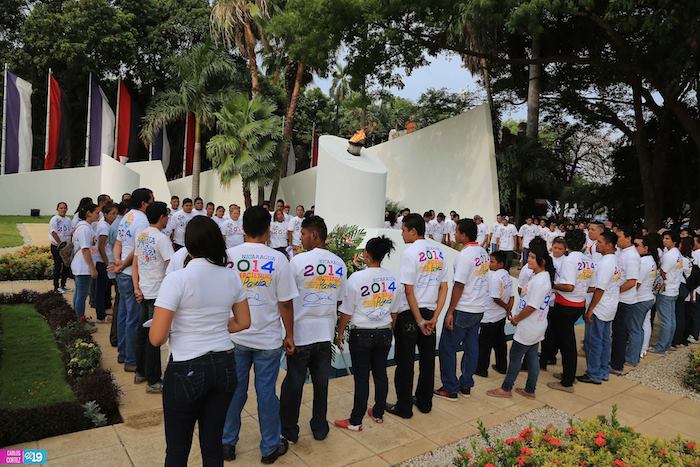 Jóvenes, mujeres, hombres, trabajadores, integrantes de movimientos sociales, sindicatos y empleados de diferentes instituciones del país, llevaron ofrendas florales a este hijo ilustre de Nicaragua.