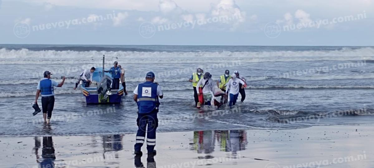 Un equipo de los Bomberos Unidos, autoridades locales, familiares y pescadores de la zona continúan la búsqueda del segundo cuerpo en el sector de Los Pinos, en la Bocana de Poneloya.