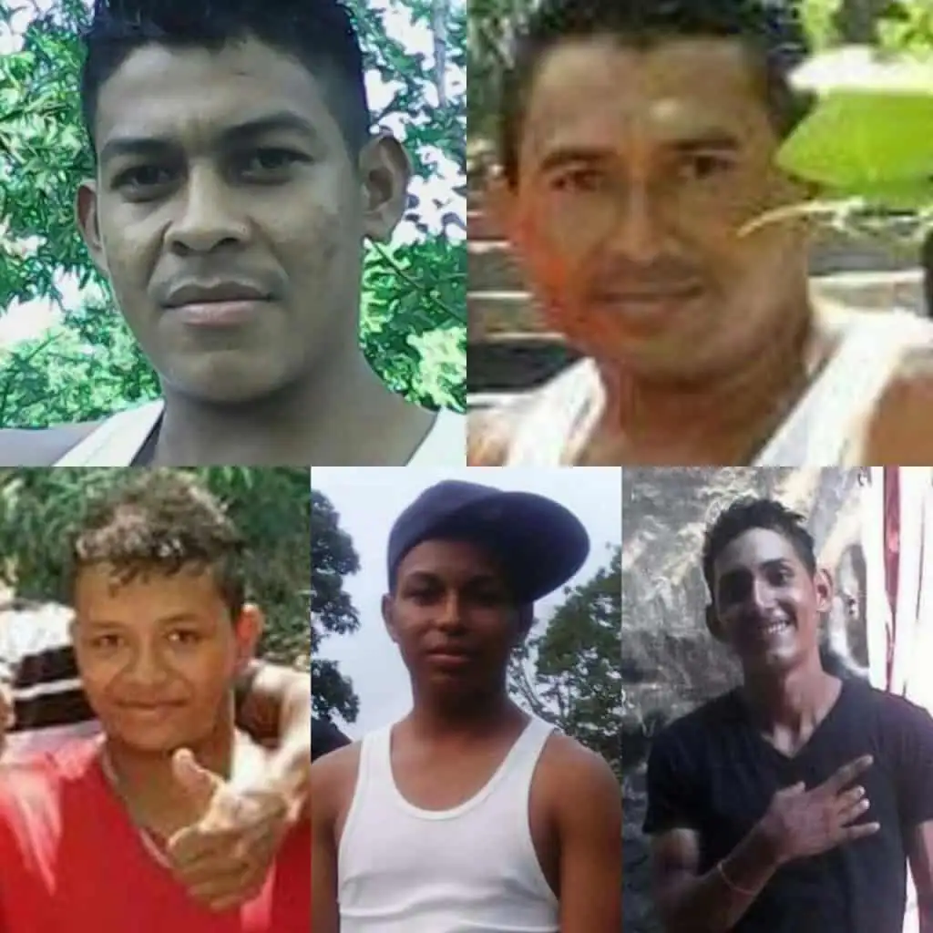 Los desaparecidos era Carlos Damián Juárez Colindres, de 31 años de edad, capitán de la lancha, los hermanos Ángelo José y Mynor Antonio, ambos de apellidos Velásquez Colindres, de 20 y 21 años respectivamente; Erick Alexander López Martínez, de 21, y José Leonel Velásquez, de 40 años.