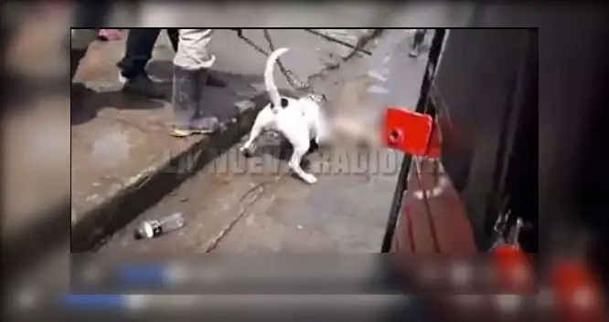 La grabación muestra a un hombre que intenta separar a los perros armado impactando varias veces con una cadena al feroz pitbull sin embargo la acción no evitó que el feroz canino soltara a su presa.