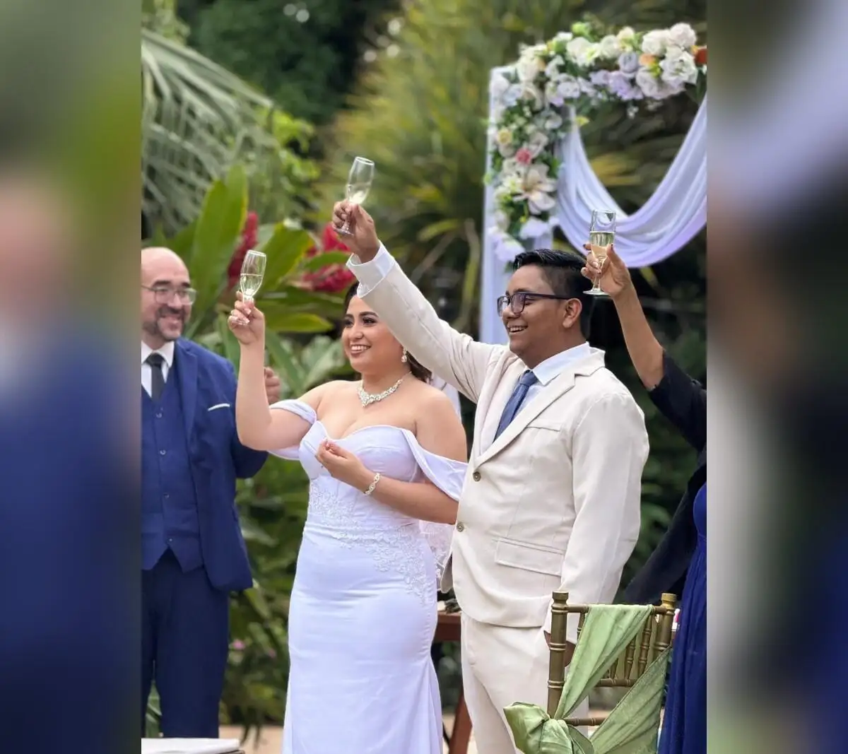 Los padrinos de boda son Víctor Puchades, originario de España, y esposo de Surama Orozco, hermana de Galaxtiquín; y doña Carmen Chávez, una vecina a la que José Luis le tiene mucho aprecio desde que vivió en el barrio Jonathan González.