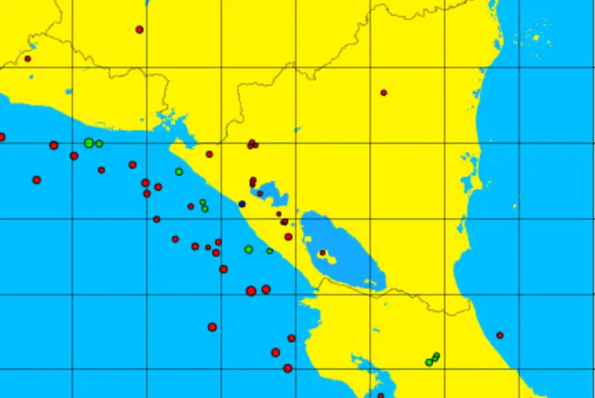 El más fuerte, ocurrió en la zona de El Astillero, en el departamento de Rivas, de 4.5 de magnitud local, a las 4:29 de la tarde.