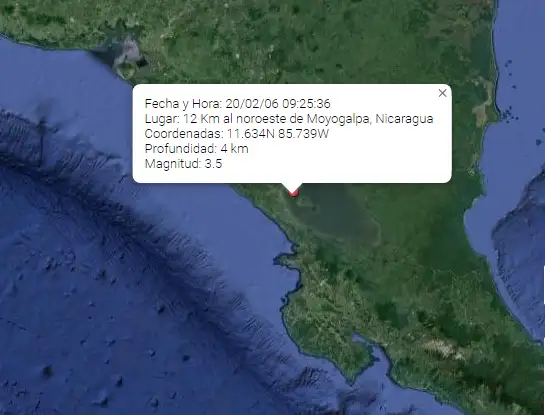 Según el Instituto Nicaragüense de Estudios Territoriales (INETER), el movimiento telúrico se localizó a una profundidad de 4 kilómetros, y ocurrió a las 09:25 minutos.