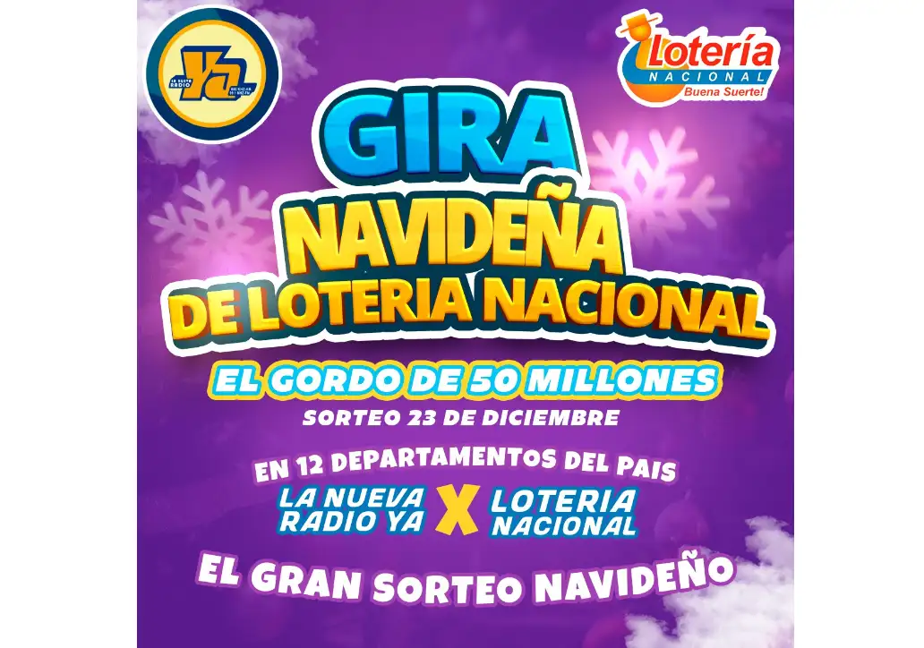 Lotería Nacional y Tu Nueva Radio YA ¡La Súper Líder del Dial! se unen para llevar Alegría a distintos departamentos del país con la Gira Navideña.