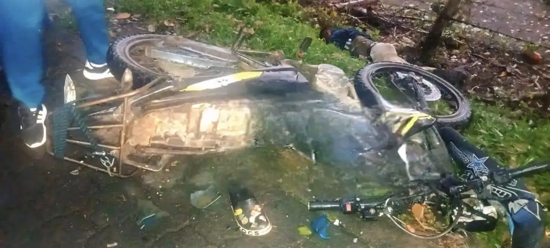 De forma inmediata murió Jeyner Ramón Ramos Sandrez, de 33 años, debido a las graves lesiones que sufrió al colisionar de frente la motocicleta placa NS 22-447 que conducía con otra cabra mecánica matrícula NS27-103 conducida por Imer Jared González Varela de 19 años.