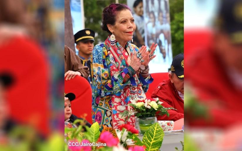 La Copresidenta de la República, Compañera Rosario Murillo, al finalizar el acto en conmemoración del 46 aniversario de fundación del Ministerio del Interior destacó el legado del Comandante Carlos Fonseca como símbolo vivo de unidad, esperanza y futuro para el pueblo nicaragüense.