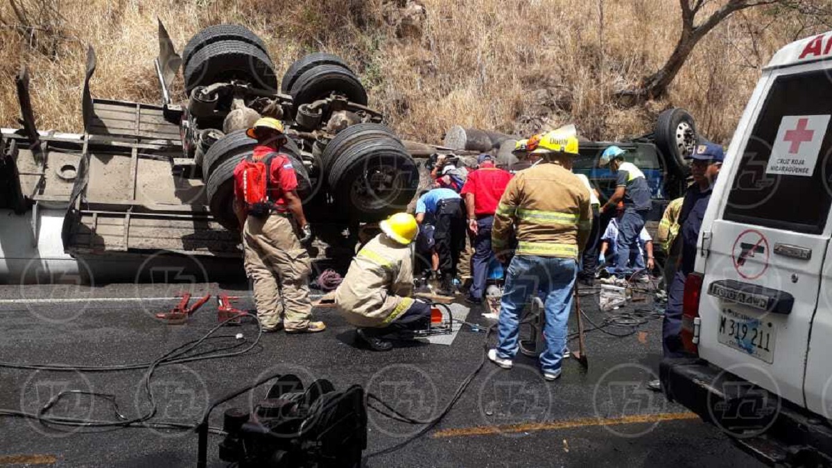 Tras el vuelco, los ocupantes quedaron atrapados bajo el pesado vehículo, por lo que los equipos de socorro trabajaron durante más de una hora con equipos hidráulicos y otras herramientas para lograr sacarlos, y luego fueron trasladados por la Cruz Roja al hospital San Juan de Dios.