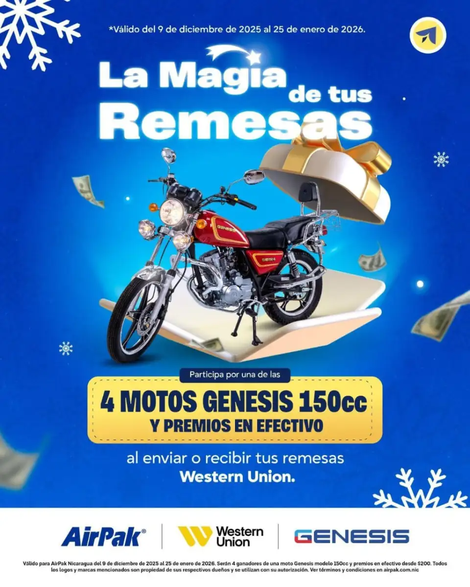 Desde la casa matriz de Airpak se dio a conocer este viernes la nueva promoción navideña que la empresa, en alianza con Western Union y Moto Génesis, han lanzado para premiar la fidelidad de sus usuarios durante esta temporada.