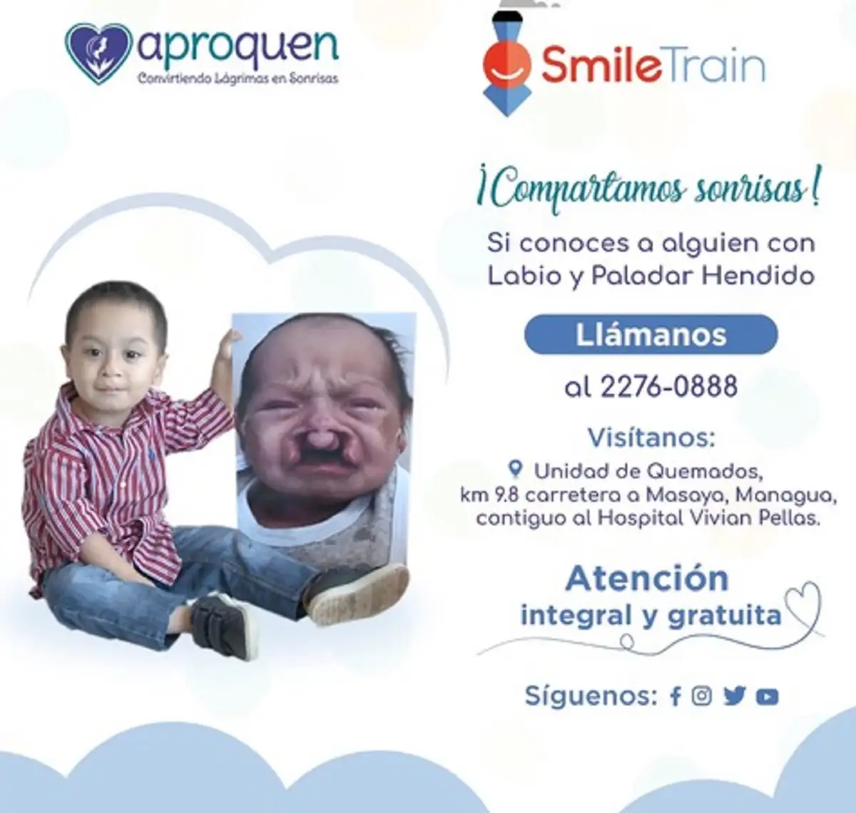 APROQUEN, a través de su Programa de Labio y Paladar Hendido, hace un llamado a toda persona que conozca a un niño o niña con Labio y Paladar Hendido a acercarse para recibir atención médica integral y gratuita.
