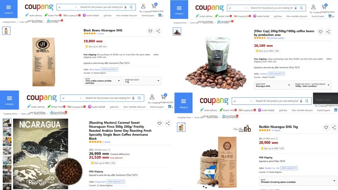 En Coupang, la plataforma de comercio electrónico más fuerte de la República de Corea, se ha casi duplicado la cantidad de compañías coreanas que ofrecen Café nicaragüense en comparación con el año 2021.