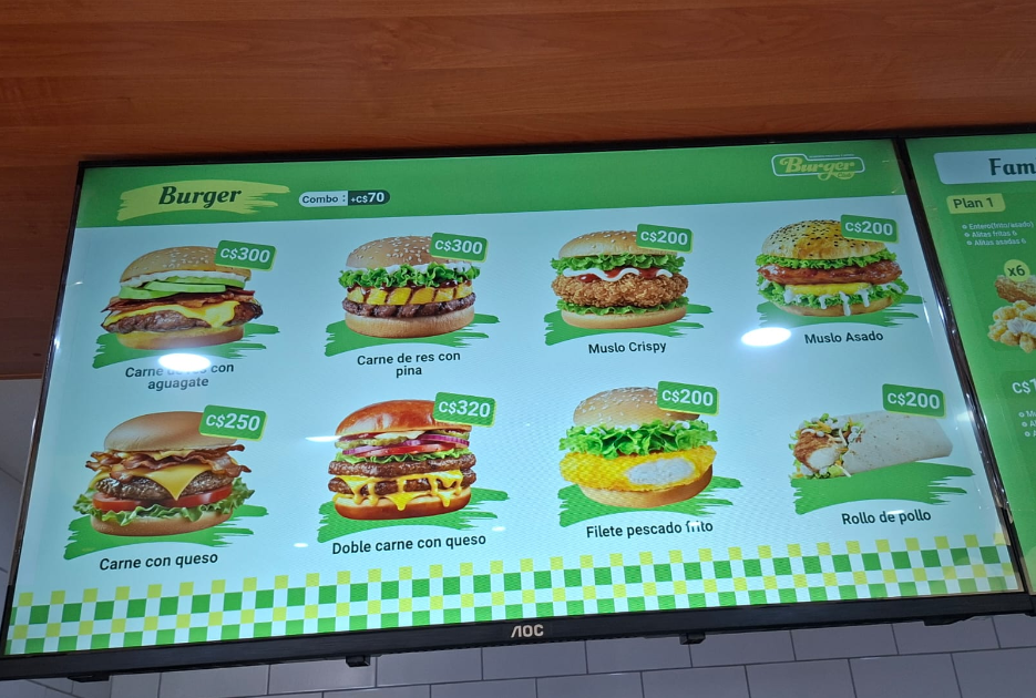 Los combos de niños tienen un valor de 200 a 220 córdobas, y los combos de pollo y alitas varían de acuerdo a la cantidad de piezas, con papas y bebidas, desde los 430 hasta los mil 700 córdobas.