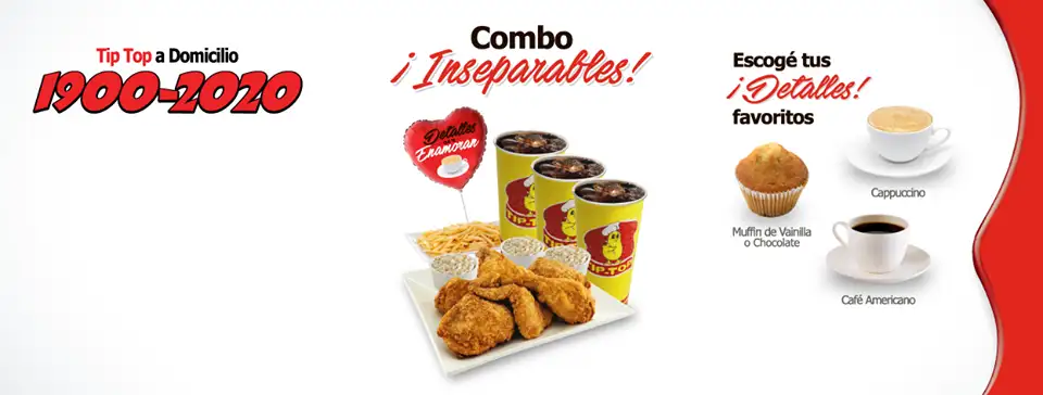 La licenciada Verónica García, jefa de mercadeo de restaurantes Tip Top, explicó que el combo “Te Quiero” lleva 4 piezas de pollo, 2 ensaladas y 2 coca colas, y además tiene derecho a un muffing de chocolate o vainilla y a un cappuccino gratis.