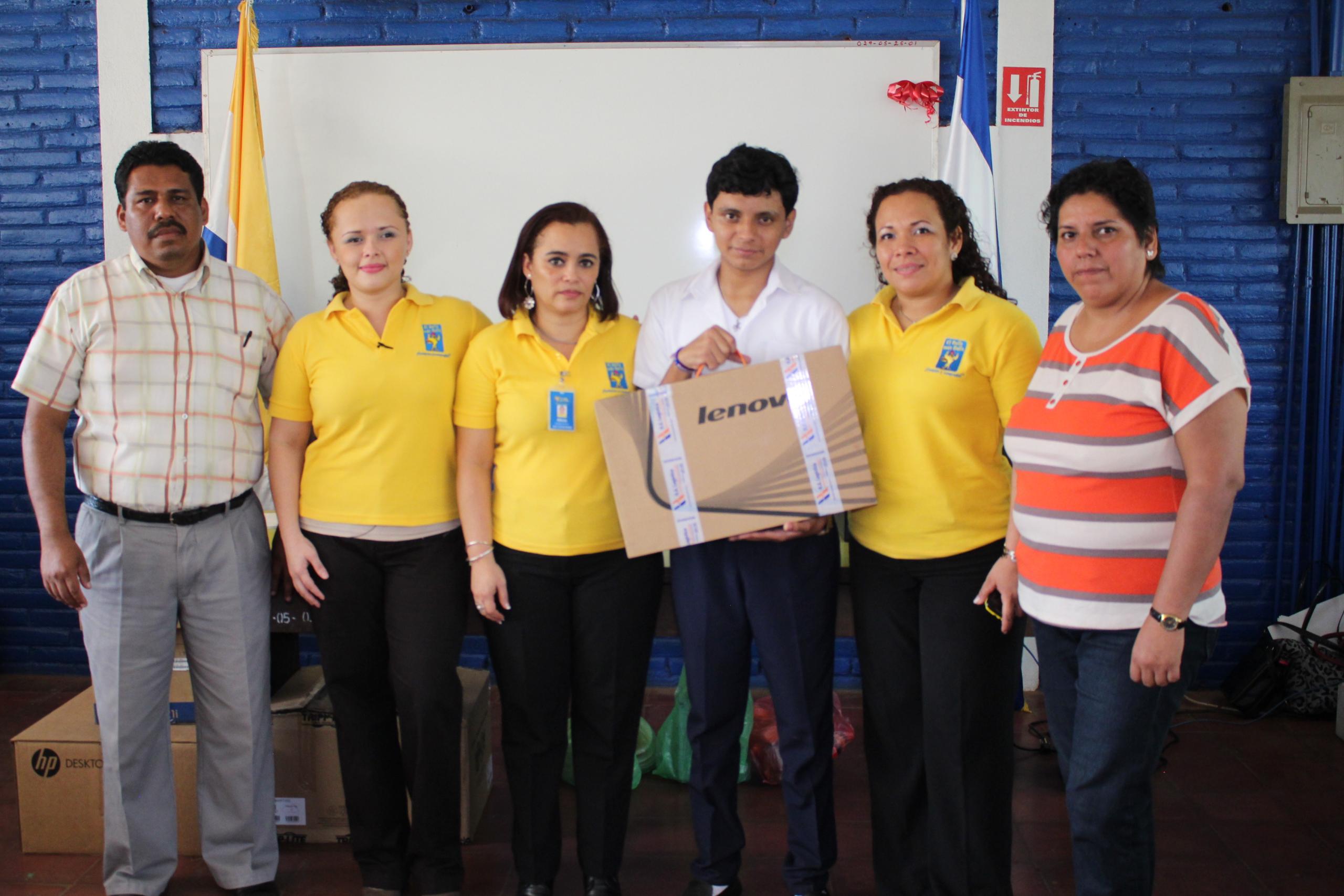 El estudiante fue sorprendido por representantes de El Gallo más Gallo en el Instituto Juan XXIII de San Marcos, Carazo, donde hicieron entrega de una computadora portátil, que sin lugar a dudas será una herramienta útil en su proceso de aprendizaje.