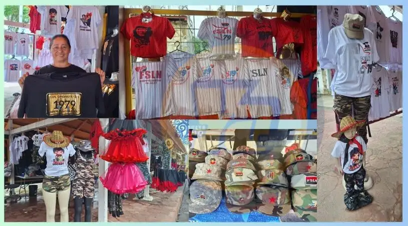 Los nicaragüenses nos preparamos para celebrar el 46/19 Avanzando en la Revolución, en Julio Victorioso para seguir Venciendo, y como es tradición en la Avenida de Bolívar a Chávez, los emprendedores ofertan atuendos completos con la simbología de esta conmemoración que nos permite la paz y las rutas de prosperidad.