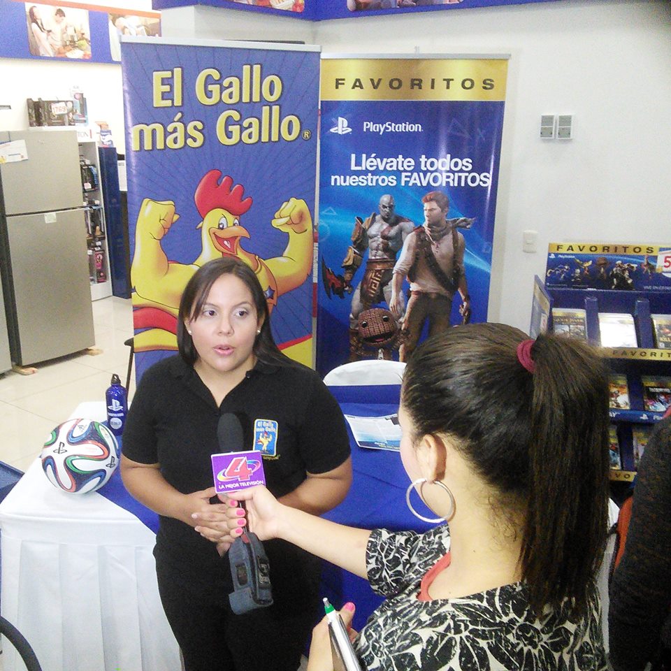Los que adquieran los videos juegos se estarán llevando a su hogar, la consola oficial de la Copa Mundial FIFA 2014, con un control o bien el balón del mundial, dijeron Omara del Gallo Mas Gallo, y David de Sony Nicaragua.