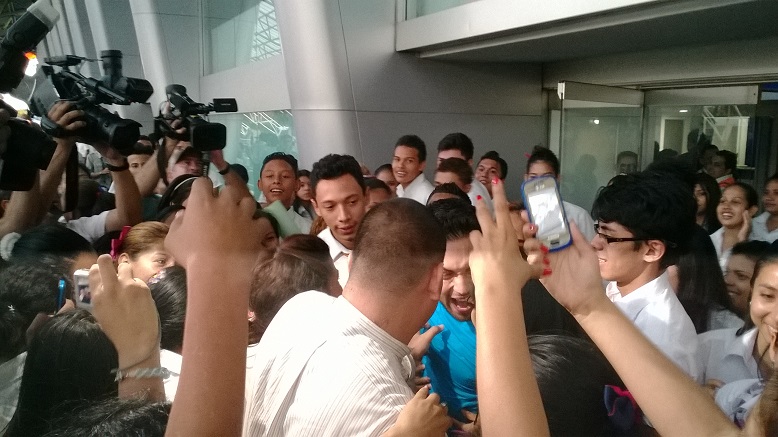 El actor de origen nicaragüense Isaac Reyes, quien protagoniza el papel de Billy en la telenovela de Telemundo, “Relaciones Peligrosas”, y que se transmite por Canal 4, llegó esta tarde a Nicaragua y fue recibido con mucho entusiasmo por sus fans en el aeropuerto Augusto C. Sandino.