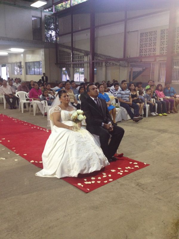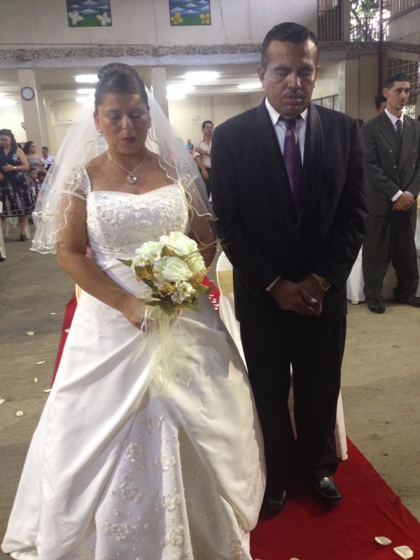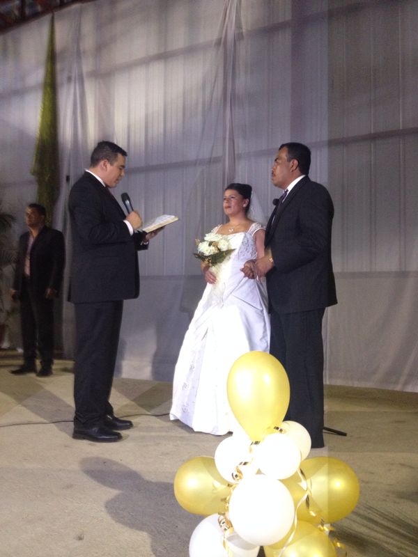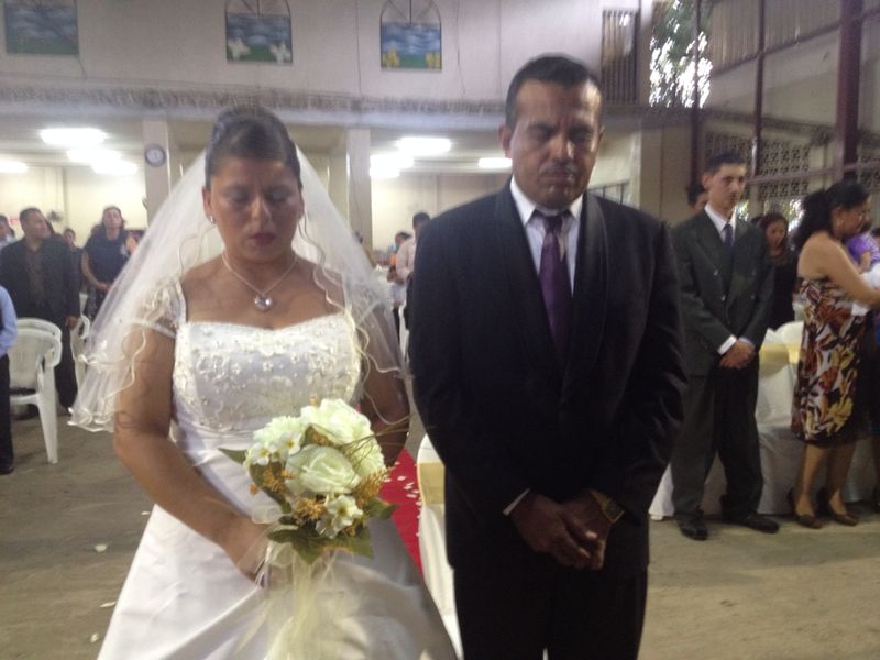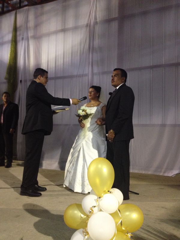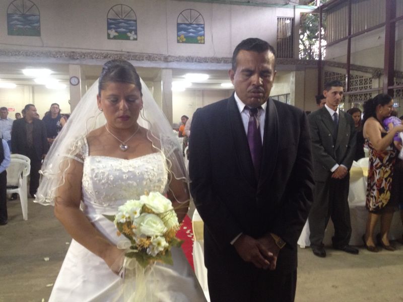 Bajo la danza El Centro de mi Vida, cinco libras de harina, una biblia, la jarra y los anillos, se casó por la iglesia evangélica Jorge Calixto Valle Rugama, quien vivió una hora de zozobra y terror, por la tardanza de la novia, la afortunada Carla Antonieta Herrera Arauz.