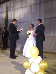 Luego de un sepulcral silencio se escuchó “Si acepto”, ante el cuestionamiento de rigor: Jorge Calixto Valle acepta por esposa a Carla Herrera Arauz.