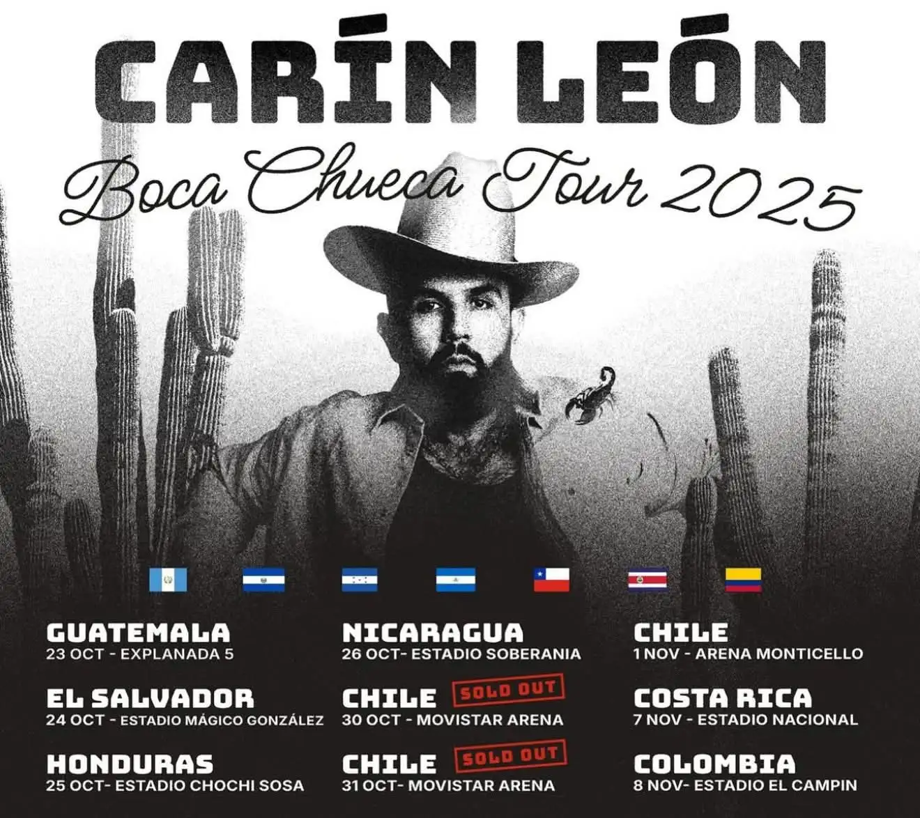 Los fanáticos nicaragüenses de la música regional mexicana están de fiesta: el reconocido cantante Carin León ha confirmado una esperada presentación en Nicaragua el próximo 26 de octubre, y el escenario elegido será nada menos que el Estadio Nacional Soberanía en Managua, en su tour “Boca Chueca “.